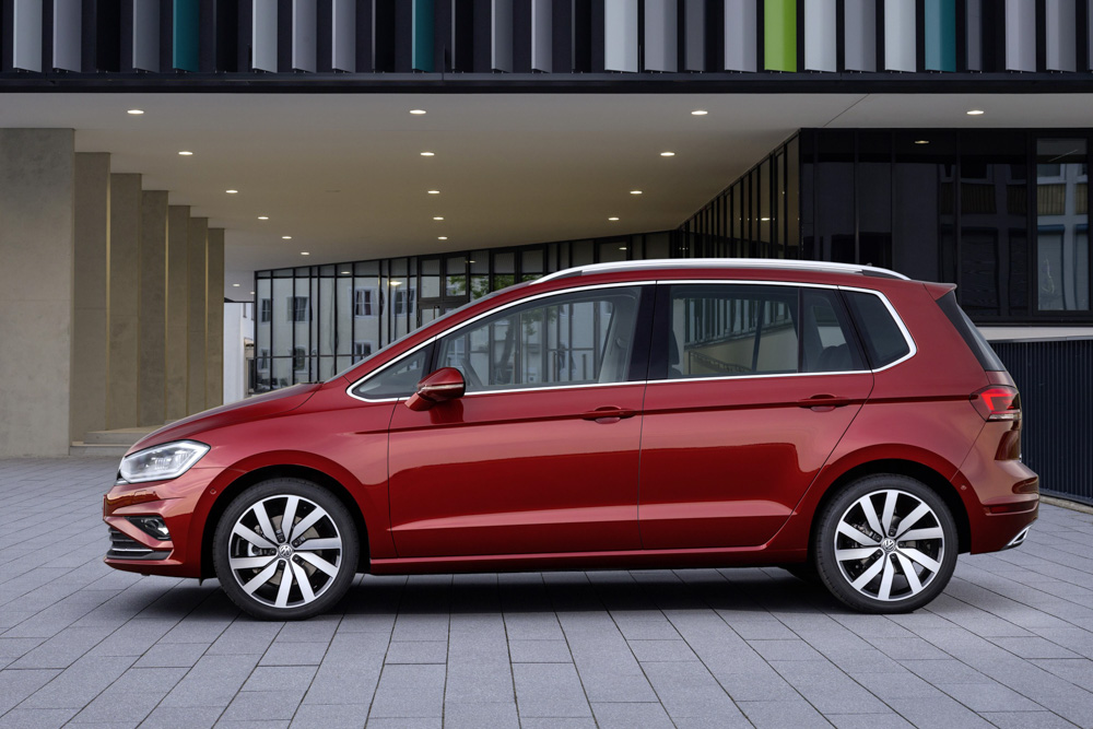 Après la Golf, Volkswagen a également modernisé la Golf Sportsvan. Elle se présente désormais de l’extérieur avec un design précis, affûté et puissant. Parmi les modifications, on compte les pare-chocs redessinés, de nouveaux phares halogènes avec feux de jour LED, des phares Full-LED au lieu de phares xénon et des feux arrière LED de série pour toutes les versions. De nouvelles jantes en alliage léger (16, 17 et 18 pouces) et de nouvelles couleurs extérieures, telles que la teinte Cranberry red uniquement disponible que pour la Golf Sportsvan, complètent le relooking extérieur. De nouveaux décors, des sièges recouverts de tissu et cuir ennoblissent l’intérieur, et la banquette arrière coulissante allant jusqu’à 18 cm offre la plus grande variabilité possible.